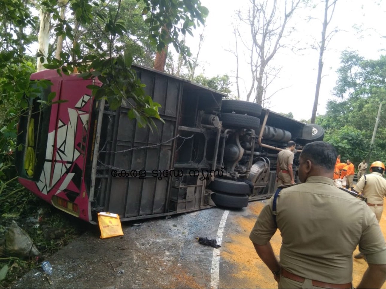 നിയത്രണം നഷ്ടപ്പെട്ട ശബരിമല തീർഥാടകരുടെ ബസ് റോഡിലേക്കു മറിഞ്ഞു നിരവധി പേർക്ക് പരുക്ക്,രണ്ടു പേർക്കു ഗുരുതര പരുക്കേറ്റു. തമിഴ്നാട് സ്വദേശികളായ തീർഥാടകരെ മുണ്ടക്കയത്തെ സ്വകാര്യ ആശുപത്രിയിൽ പ്രവേശിപ്പിച്ചു. 2 പേരെ കോട്ടയം മെഡിക്കൽ കോളേജ് ലേയ്ക്ക് മാറ്റി, 44 യാത്രക്കാരുമായി തമിഴ്നാട്ടിൽ നിന്നു ശബരിമലയിലേക്കു പോവുകയായിരുന്ന ബസിന് അമിത വേഗതയാണ് അപകടത്തിന് കാരണം, അമിത വേഗത്തിൽ എത്തിയ ബസ് വളവിൽ വച്ചു ബസിന്റെ നിയത്രണം വിട്ട് മറിയുകയായിരുന്നു,ഉടൻതന്നെ ഇതുവഴി കടന്നുപോയ വാഹന യാത്രക്കാരും ഹൈവേ പോലീസും, എം വി ഡി സേഫ് സോണും,പീരുമേട് ഫയർഫോഴ്സുമാണ് രക്ഷാപ്രവർത്തനങ്ങൾ നടത്തിയത് പരിക്കേറ്റവരെ ആശുപത്രികളിൽ പ്രവേശിപ്പിച്ചു.