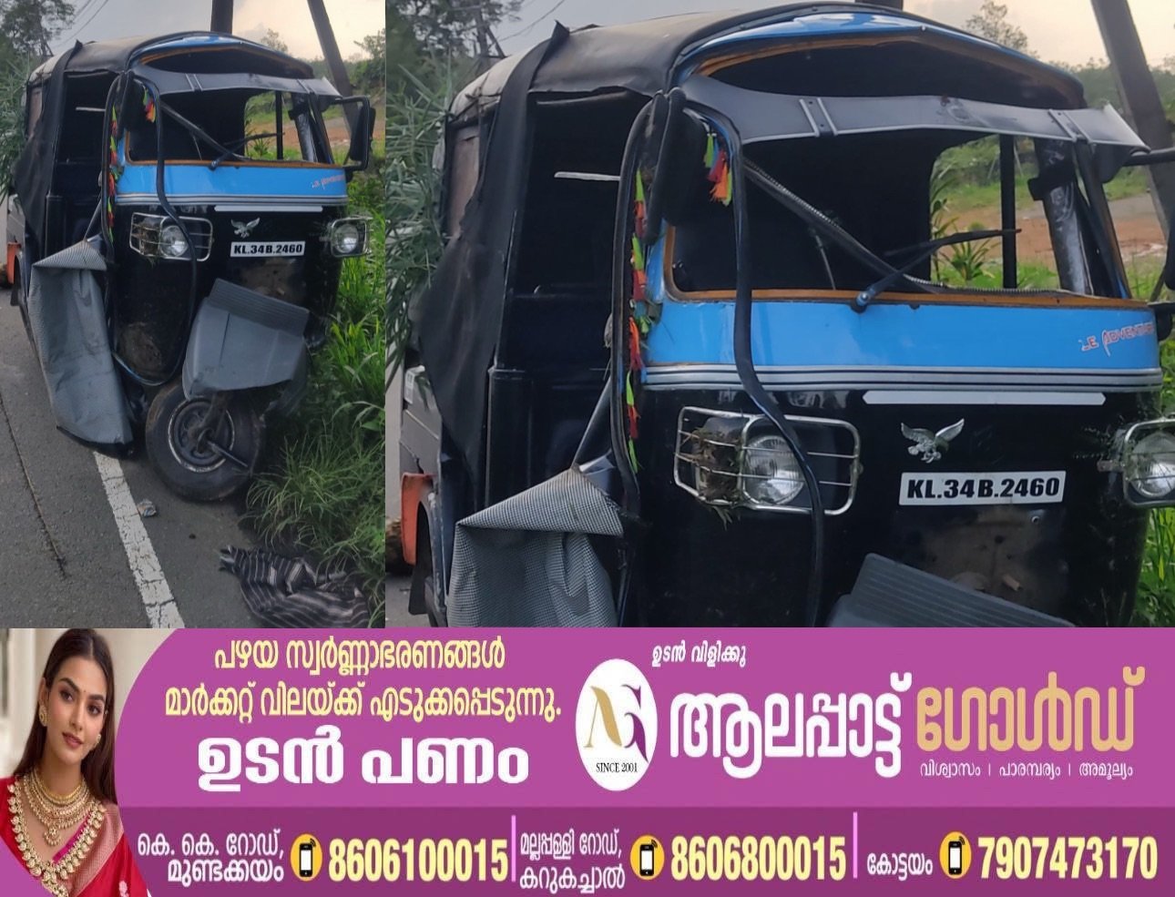 ഇന്ന് വൈകുന്നേരം 4.30 യോടെയാണ് ചിറ്റടി ജംഗ്ഷന് സമീപം അപകടമുണ്ടായത്, കാഞ്ഞിരപ്പള്ളി ഭാഗത്ത് നിന്നും മുണ്ടക്കയം ഭാഗത്തേയ്ക്ക് വരികയായിരുന്നു ഓട്ടോ. പൊടുന്നനെ നായ ചാടിയപ്പോള് ഓട്ടോറിക്ഷ വെട്ടിച്ചു. ഇതോടെ വാഹനം മറിയുകയും ഓട്ടോയിൽ ഉണ്ടായിരുന്നു യാത്രക്കാർ റോഡിലേയ്ക്ക് വിഴുകയുമായിരുന്നു, അപകടത്തിൽ യാത്രകാർക്കും ഓട്ടോ ഡ്രൈവർക്കും പരുക്കുകളോടെ ആശുപത്രിയിൽ പ്രേവേശിപ്പിച്ചു