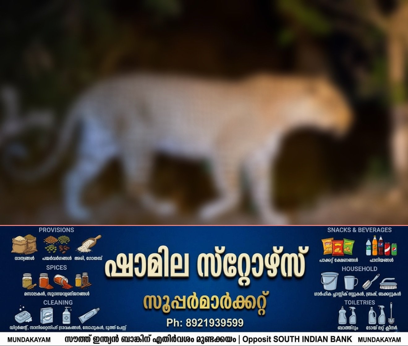 അതേസമയം, വന്യജീവി ശല്യം രൂക്ഷമായതിനെ തുടർന്ന് പ്രദേശത്ത് വനംവകുപ്പ് സ്ഥാപിച്ചിരുന്ന ക്യാമറ തകരാറിലാണെന്ന വിവരം നാട്ടുകാരിൽ പ്രതിഷേധത്തിന് ഇടയാക്കിയിട്ടുണ്ട്. അടിയന്തരമായി പുതിയ ക്യാമറകൾ സ്ഥാപിക്കാനും, പ്രദേശത്ത് തിരച്ചിൽ ശക്തമാക്കി ജനങ്ങളുടെ ജീവനും വളർത്തുമൃഗങ്ങൾക്കും സംരക്ഷണം ഉറപ്പാക്കാനും വനംവകുപ്പ് തയ്യാറാകണമെന്നാണ് നാട്ടുകാരുടെ ആവശ്യം.