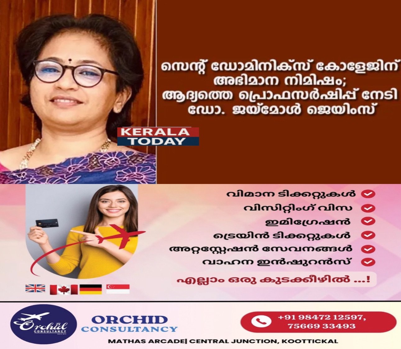 കാഞ്ഞിരപ്പള്ളി : സെന്റ് ഡൊമിനിക്സ് കോളേജിന്റെ ചരിത്രത്തിൽ ആദ്യമായിട്ടാണ് കോളേജിൽ തന്നെ പഠിച്ച ഒരു അധ്യാപികയ്ക്ക് പ്രമോഷൻ കിട്ടി പ്രൊഫസർ ആകുന്നത്. ഈ നേട്ടം കൈവരിച്ചത് എക്കണോമിക്സ്…