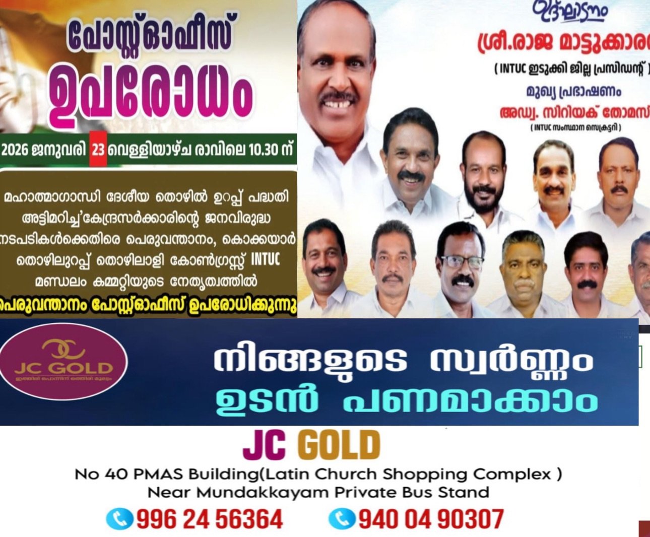 പെരുവന്താനം: മഹാത്മാഗാന്ധി ദേശീയ ഗ്രാമീണ തൊഴിലുറപ്പ് പദ്ധതി അട്ടിമറിക്കാനുള്ള കേന്ദ്രസർക്കാർ നീക്കങ്ങൾക്കെതിരെ ശക്തമായ പ്രതിഷേധവുമായി ഐ.എൻ.ടി.യു.സി (INTUC). പദ്ധതിയെ തകർക്കുന്ന ജനവിരുദ്ധ നടപടികളിൽ പ്രതിഷേധിച്ച് പെരുവന്താനം, കൊക്കയാർ…