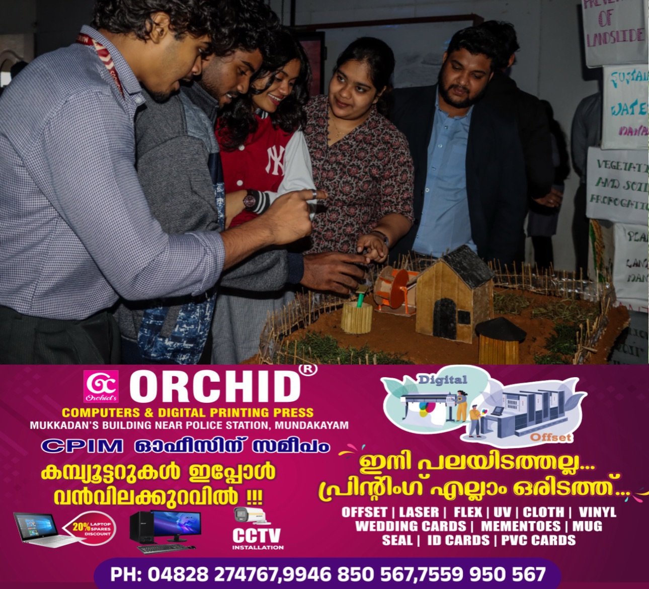 പ്രകൃതിദുരന്തങ്ങളോടനുബന്ധിച്ച് ഇലക്ട്രിസിറ്റി നഷ്ടപ്പെടുന്ന പ്രദേശങ്ങളെ ഓർമ്മപ്പെടുത്തിക്കൊണ്ട് എക്സിബിഷൻ സ്ഥലങ്ങളിൽ മൊബൈൽ വെട്ടം കരുതി വേണമായിരുന്നു സന്ദർശകർ പ്രവേശിക്കേണ്ടിയിരുന്നത്. പ്രകൃതിദുരന്തങ്ങൾ അനുബന്ധിച്ചുള്ള ചിത്രങ്ങളും പത്രവാർത്തകളും മോഡലുകളും എക്സിബിഷനെ ആകർഷകമാക്കി. മോഡലുകളുടെ വെളിച്ചത്തിൽ ഉരുൾപൊട്ടലും മണ്ണിടിച്ചിലും എങ്ങനെ ഉണ്ടാകുന്നുവെന്ന് വിദ്യാർത്ഥികൾ സന്ദർശകരെ പറഞ്ഞു മനസ്സിലാക്കി.