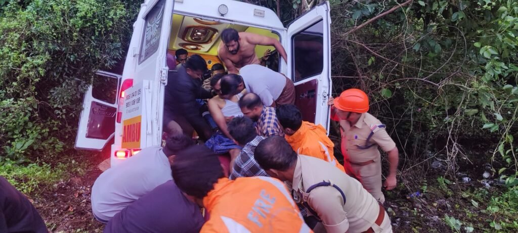 രോഗിയുമായി പോയ ആംബുലൻസ് മുണ്ടക്കയം കുട്ടിക്കാനം റോഡിൽ മുറിഞ്ഞപുഴയക്ക് സമീപം മറിഞ്ഞു