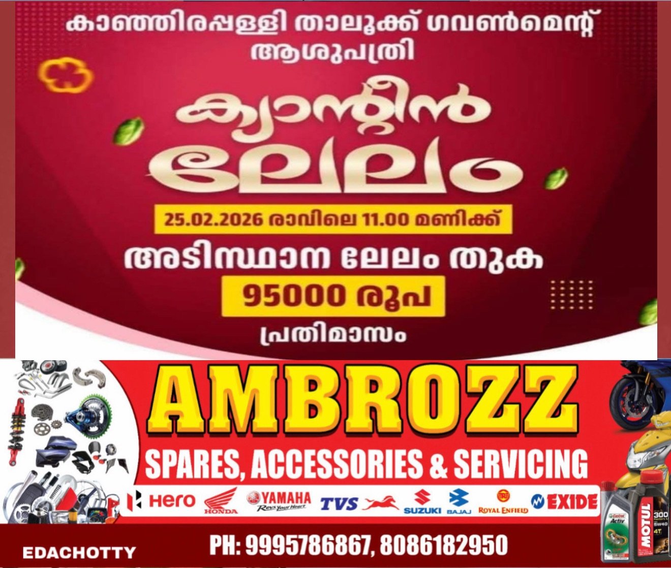 കാഞ്ഞിരപ്പള്ളി: കാഞ്ഞിരപ്പള്ളി താലൂക്ക് ഗവൺമെന്റ് ആശുപത്രിയിലെ കാന്റീൻ ലേലം സംബന്ധിച്ച പുതിയ നീക്കങ്ങൾ വലിയ ജനകീയ പ്രതിഷേധത്തിന് വഴിതുറക്കുന്നു. വരാനിരിക്കുന്ന സാമ്പത്തിക വർഷത്തെ ലേലത്തിനായി 95,000 രൂപ അടിസ്ഥാന മാസവാടക നിശ്ചയിച്ചതാണ് വിവാദമായിരിക്കുന്നത്. സാധാരണക്കാരായ രോഗികളെ ചൂഷണം ചെയ്യുന്ന നടപടിയാണിതെന്ന് ആരോപിച്ച് സോഷ്യൽ മീഡിയയിലും നാട്ടുകാർക്കിടയിലും പ്രതിഷേധം ശക്തമാണ്.