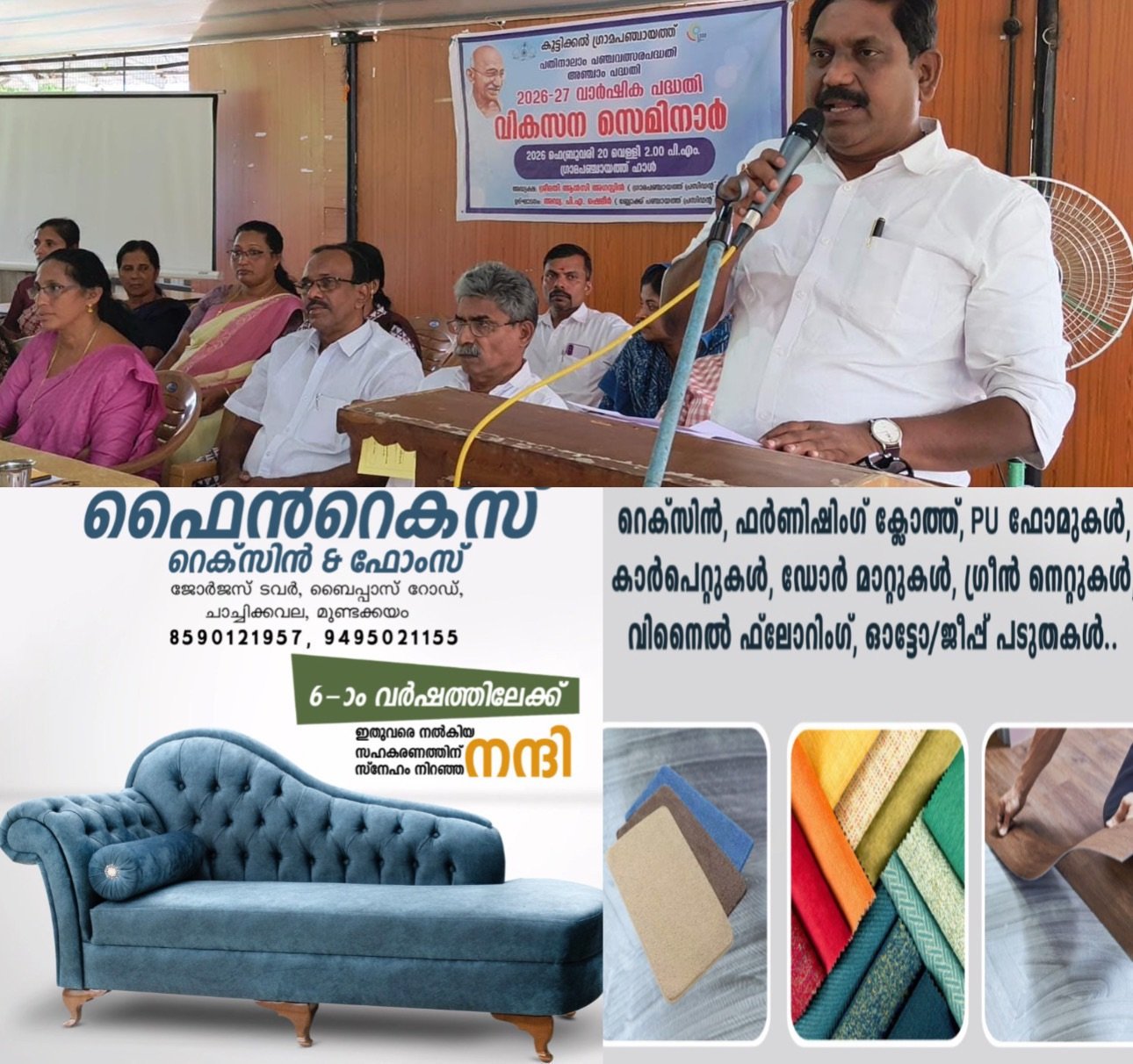 കൂട്ടിക്കൽ: പ്രാദേശിക വിനോദസഞ്ചാര സാധ്യതകൾക്ക് മുൻഗണന നൽകിക്കൊണ്ടുള്ള പദ്ധതികൾക്ക് മുൻതൂക്കം നൽകി കൂട്ടിക്കൽ ഗ്രാമപഞ്ചായത്ത് വികസന സെമിനാർ സംഘടിപ്പിച്ചു. ഗ്രാമപഞ്ചായത്ത് ഹാളിൽ നടന്ന സെമിനാർ ജില്ലാ പഞ്ചായത്ത് അംഗം അഡ്വ. പി. ആർ. ജിനരാജ് ഉദ്ഘാടനം ചെയ്തു.