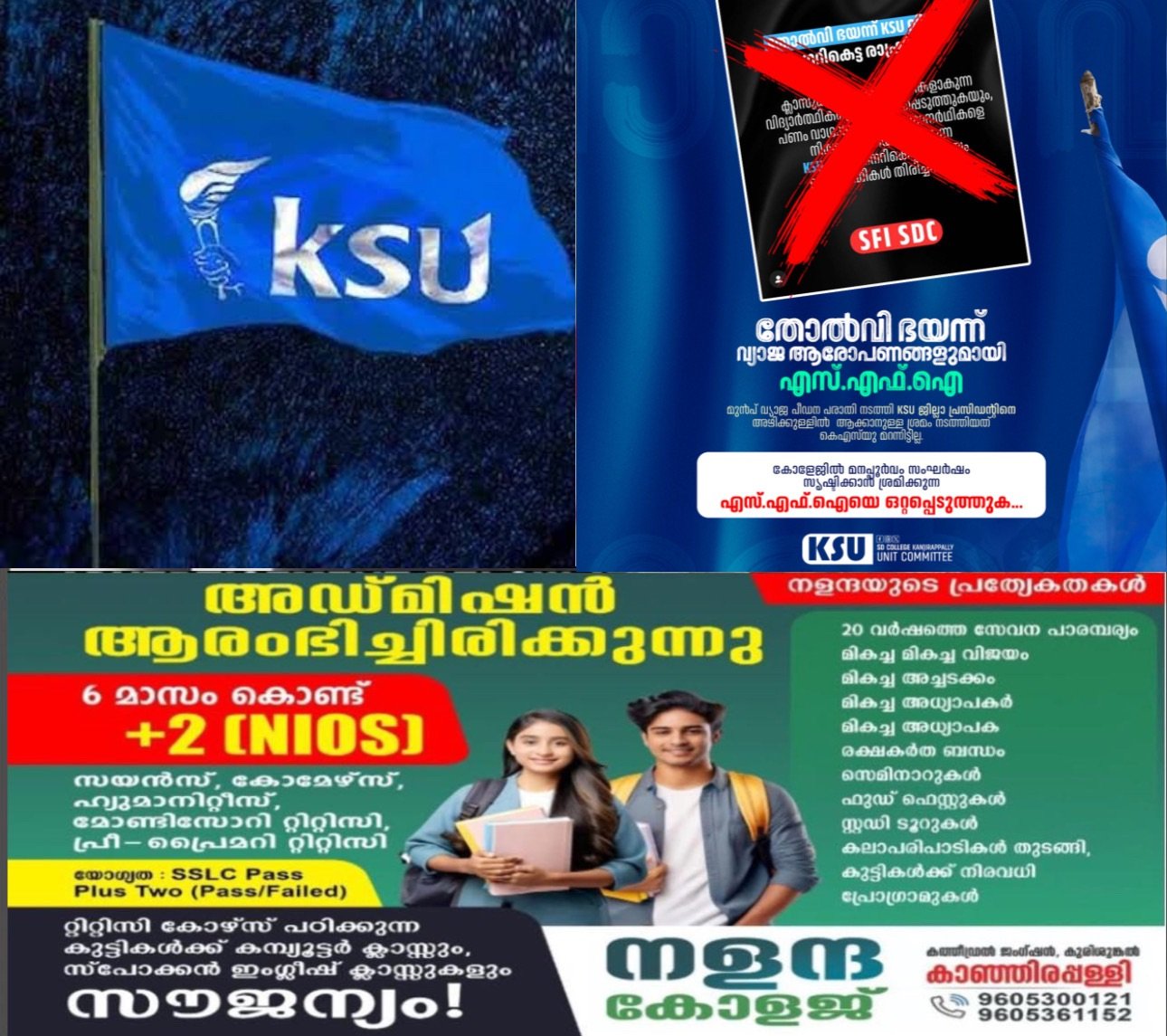 കാഞ്ഞിരപ്പള്ളി: മഹാത്മാഗാന്ധി സർവകലാശാലയുടെ കീഴിൽ വരുന്ന ക്യാമ്പസുകളിലെ തിരഞ്ഞെടുപ്പ് അടുത്തിരിക്കെ കാഞ്ഞിരപ്പള്ളി സെന്റ് ഡൊമിനിക്സ് കോളേജ് കേന്ദ്രീകരിച്ച്, എസ് എഫ് ഐ സംഘർഷം അഴിച്ചുവിടാൻ ശ്രമം നടത്തുന്നതായി കെഎസ്യു സമാധാനപരമായ സാഹചര്യo നിലനിൽക്കുമ്പോൾ തോൽവി ഭയന്ന് ,പുറത്തുനിന്നും വനിത നേതാവിന്റെ നേതൃതത്തിലാണ് എസ്എഫ്ഐ ഗുണ്ടകൾ നിരന്തരം അക്രമം സൃഷ്ടിച്ച്, വിദ്യാർത്ഥികളെ മത്സര രംഗത്ത് നിന്ന് പിന്തിരിപ്പിക്കാൻ ഉള്ള ശ്രമം തുടർന്നു കൊണ്ടിരിക്കുന്നത് കഴിഞ്ഞ വർഷം കെഎസ്യു ജില്ല പ്രസിഡന്റ കെ എൻ