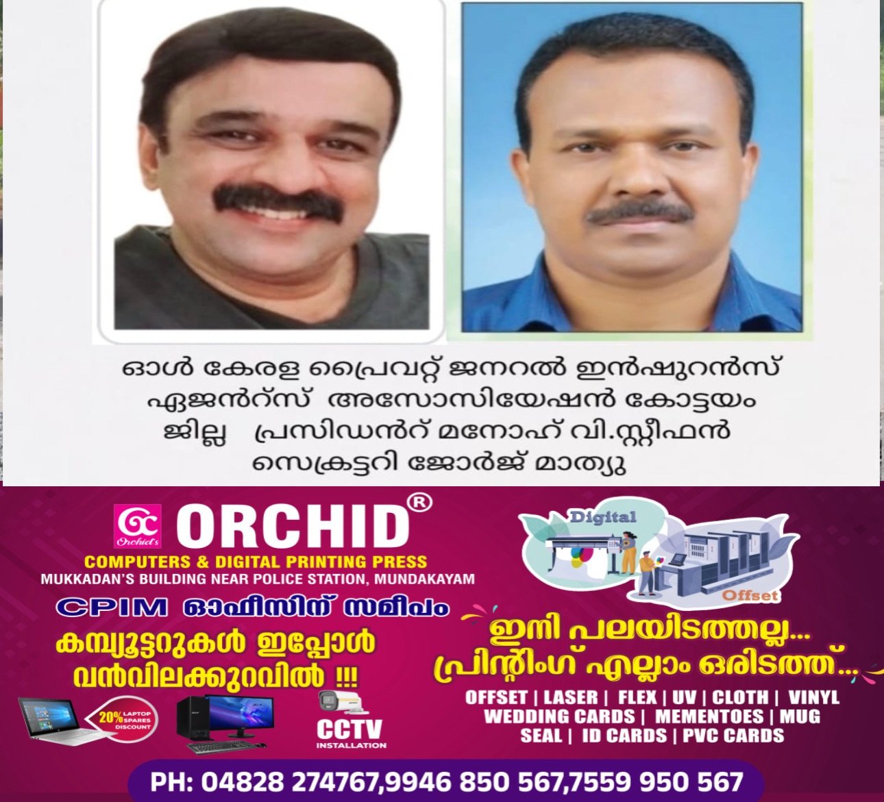 അസോസിയേഷൻ ജില്ലാ ഭാരവാഹികളായി മനോഹ് വി.സ്റ്റീഫൻ (പ്രസിഡൻറ് ) ജോർജ് മാത്യു (സെക്രട്ടറി)