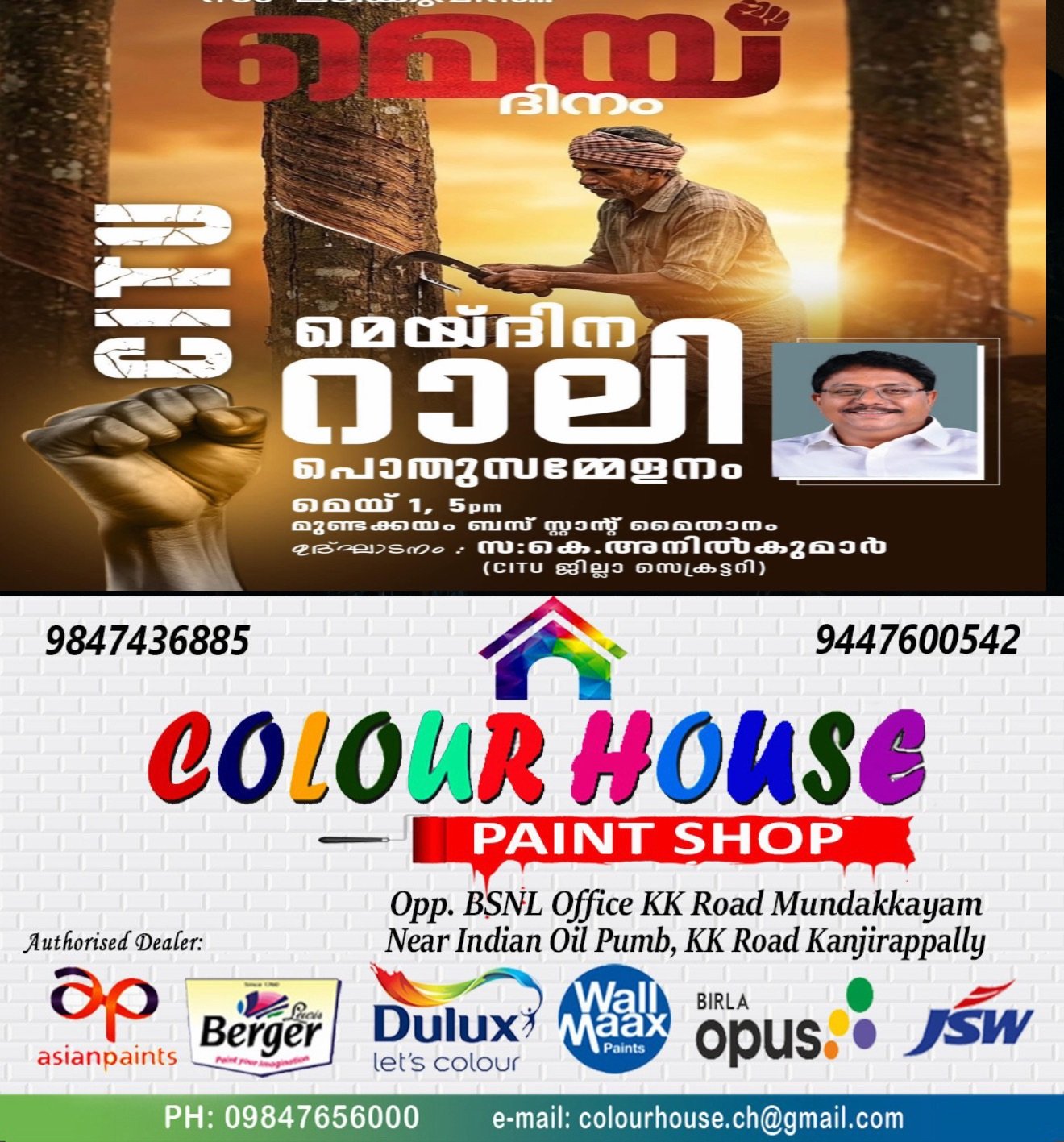 • ഉദ്ഘാടനം: അഡ്വ. കെ. അനിൽകുമാർ (സിഐടിയു ജില്ലാ സെക്രട്ടറി)