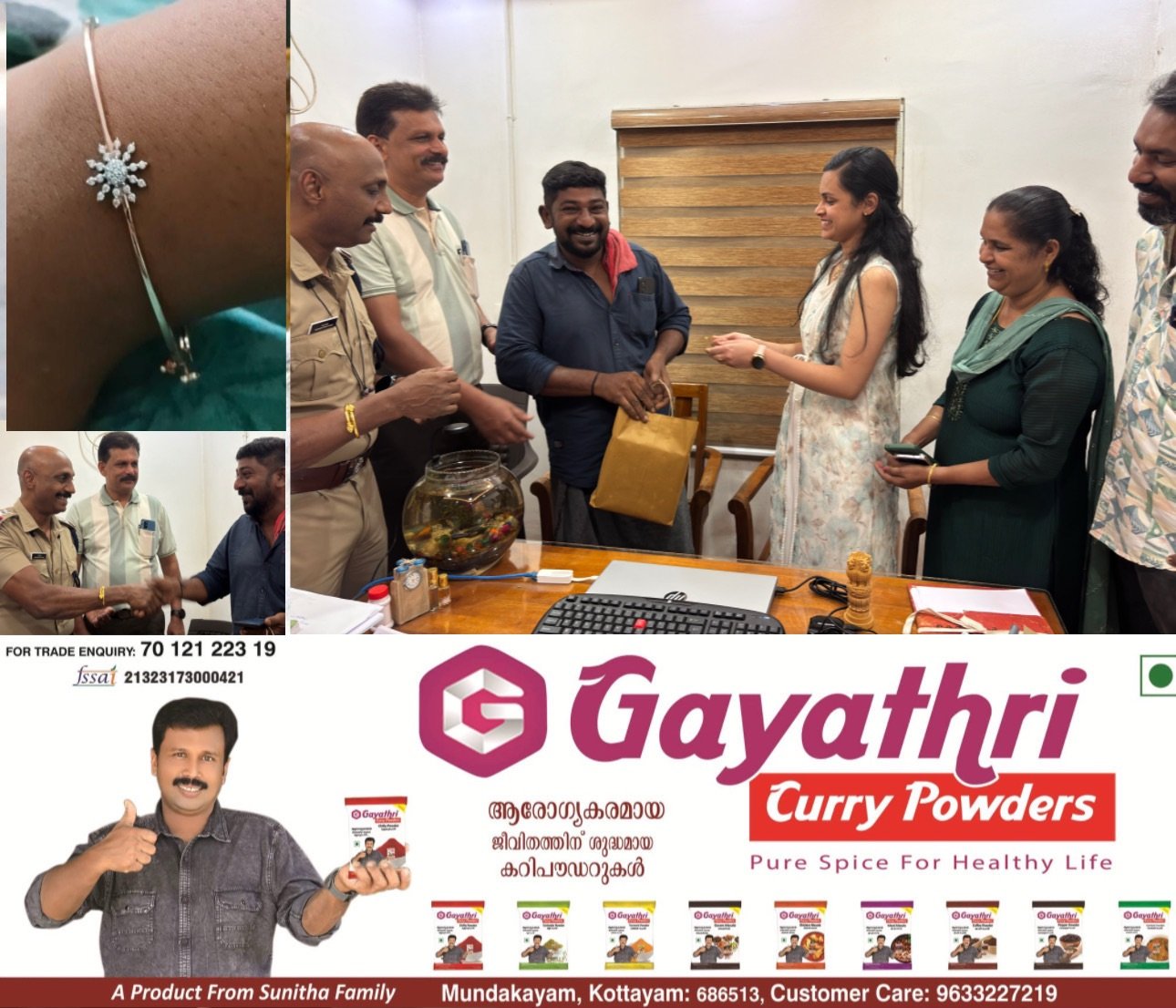 വള നഷ്ടപ്പെട്ടത് പാലൂർക്കാവ് സ്വദേശിനിയായ റിയയ്ക്കായിരുന്നു. ഇന്നലെ ഉച്ചയ്ക്ക് ശേഷമാണ് റിയയ്ക്ക് വള നഷ്ടപ്പെട്ടത്. വള നഷ്ടമായ വിവരം കേരള ടുഡേ വാർത്തയായി നൽകിയിരുന്നു. ഈ വാർത്ത കണ്ടതിനെ തുടർന്നാണ് ബിബിൻ വള പാലൂർക്കാവ് സ്വദേശിനിയുടെ ആണന്ന് മനസിലാക്കുകയും ഉടൻ ഫോൺ നമ്പരിൽ ബന്ധപ്പെടുകയും ചെയ്തത്. ഉടൻ മുണ്ടക്കയം പോലീസ് സ്റ്റേഷൻ എസ് ഐ വിപിൻ സർ വിവരം അറിയിക്കുകയും ചെയ്തു
