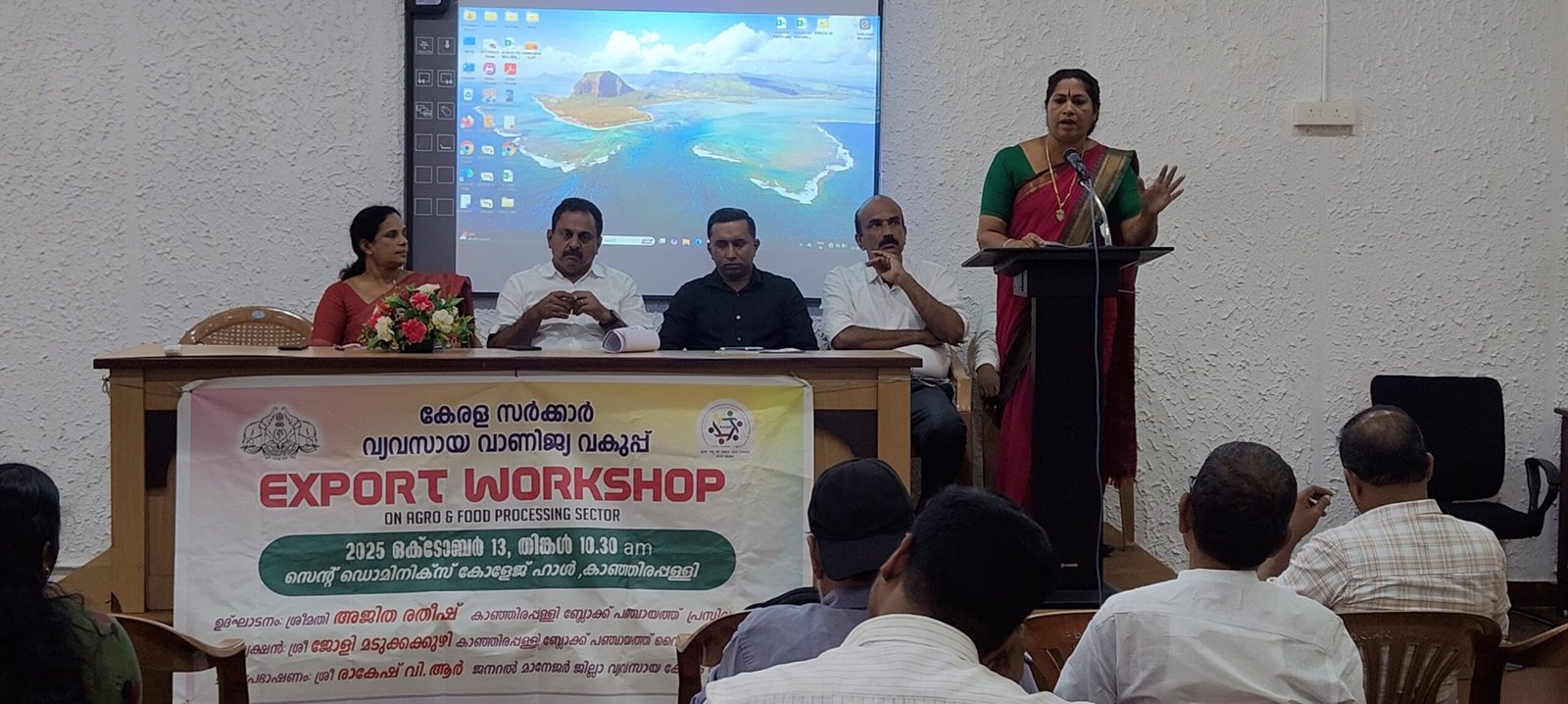 കാഞ്ഞിരപ്പളളി: കാർഷിക ഭക്ഷ്യമേഖലയിലെ മൂല്യവർദ്ധിത ഉൽപ്പന്നങ്ങൾക്ക് ന്യായവില ലഭ്യമാക്കി വിദേശ മാർക്കറ്റുകളിൽ എത്തിക്കാൻ ബ്ലോക്ക് പഞ്ചായത്തും, താലൂക്ക് വ്യവസായ വകുപ്പും സംയുക്തമായി പദ്ധതികൾ തയ്യാറാക്കുമെന്ന് ബ്ലോക്ക് പഞ്ചായത്ത് പ്രസിഡൻറ് അജിത രതീഷ് അഭിപ്രായപ്പെട്ടു. കാഞ്ഞിരപ്പളളി സെൻറ് ഡൊമിനിക്സ് കോളേജിൽ നടന്ന എക്സ്പോർട്ട് വർക്ക് ഷോപ്പ് ഉൽഘാടനം ചെയ്ത് സംസാരിക്കുന്നയായിരുന്നു അവർ. ബ്ലോക്ക് പഞ്ചായത്ത് വൈസ് പ്രസിഡൻറ് ജോളി മടുക്കകുഴി അദ്ധ്യക്ഷത വഹിച്ച യോഗത്തിൽ ജില്ലാ പഞ്ചായത്ത് അംഗം ജെസ്സി ഷാജൻ, ജില്ലാ വ്യവസായ ഓഫീസർ രാകേഷ് വി.ആർ., കോളേജ് പ്രിൻസിപ്പല് ഡോ. സീമോൻ തോമസ്, താലൂക്ക് വ്യവസായ മേധാവി ഫൈസൽ കെ.കെ., ലോറൻസ് മാത്യൂ തുടങ്ങിയവർ സംസാരിച്ചു. ചെറുകിട, ഇടത്തരം സംരംഭകർ ഉൽപ്പാദിപ്പിക്കുന്ന ഉൽപ്പന്നങ്ങൾ കയറ്റുമതി ചെയ്യുന്നതിനാവശ്യമായ തുടർനടപടികൾ വ്യവസായ വകുപ്പ് ഏറ്റെടുക്കുമെന്നും അറിയിച്ചു. മികച്ച സംരംഭകരായ കല്ലൂർ ഇലക്ട്രോണിക്സ് എം.ഡി. ജേക്കബ് കെ ജേക്കബ്, ലോജിസ്റ്റിക്ക് കണ്സൾട്ടൻറ് ശങ്കർ ചന്ദ്രശേഖർ എന്നിവർ വിവിധ വിഷയങ്ങളിൽ ക്ലാസ്സെടുത്തു. ഉൽപ്പന്നങ്ങൾ കയറ്റുമതി ചെയ്യുന്നതുമായി ബന്ധപ്പെട്ട കാര്യങ്ങൾ മനസ്സിലാക്കുവാൻ സംരംഭകർക്ക് അവസരം ലഭിച്ചു. താലൂക്കിലെ പഴയതും, പുതിയതുമായ നിരവധി സംരംഭകർ ശിൽപ്പശാലയിൽ പങ്കെടുത്തു.