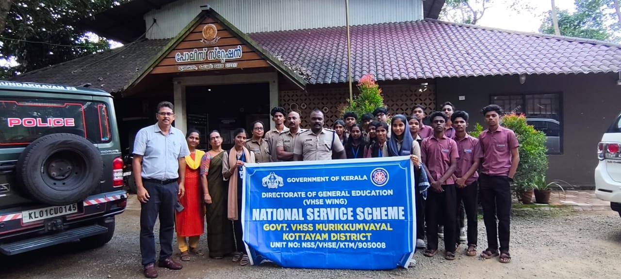 മുണ്ടക്കയം :മുരിക്കുവയൽ ഗവർമെന്റ് വൊക്കേഷണൽ ഹയർ സെക്കൻഡറി എൻഎസ്എസ് വോളണ്ടിയർമാർ മുണ്ടക്കയം പോലീസ് സ്റ്റേഷൻ സന്ദർശിച്ചു സ്റ്റേഷൻ ഇൻസ്പെക്ടർ രാഗേഷ് കുമാർ സബ് ഇൻസ്പെക്ടർ വിപിൻ മറ്റു പോലീസ് ഉദ്യോഗസ്ഥർ എന്നിവരുടെ നേതൃത്വത്തിൽ പോലീസ് സ്റ്റേഷന്റെ പ്രവർത്തനങൾ വിദ്യാർത്ഥികൾക്ക് വിവരിക്കുകയും നിയമപാലനം, നിയമങ്ങൾ ഉൾപ്പെടെ ഉള്ള പ്രധാനപ്പെട്ട വിഷയങ്ങളെക്കുറിച്ച് കുട്ടികളെ ബോധവൽക്കരിക്കുകയും ചെയ്തു