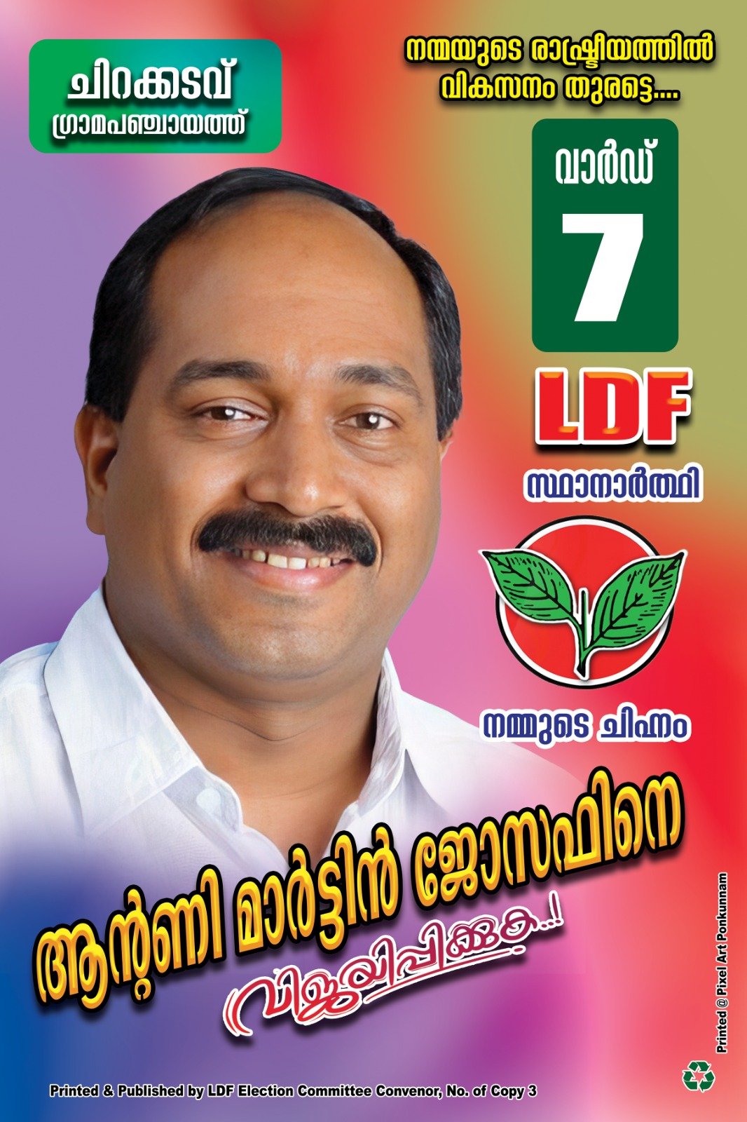സീറ്റ് സിപിഐക്ക് നൽകി:ചിറക്കടവ് ഗ്രാമപഞ്ചായത്ത് ഏഴാം വാർഡിൽ കേരളകോൺഗ്രസ് (എം)ന്റെ ജനകീയ മെമ്പർ ആന്റണി മാർട്ടിൻ സ്വതന്ത്ര്യനായി മത്സരിക്കുന്നു