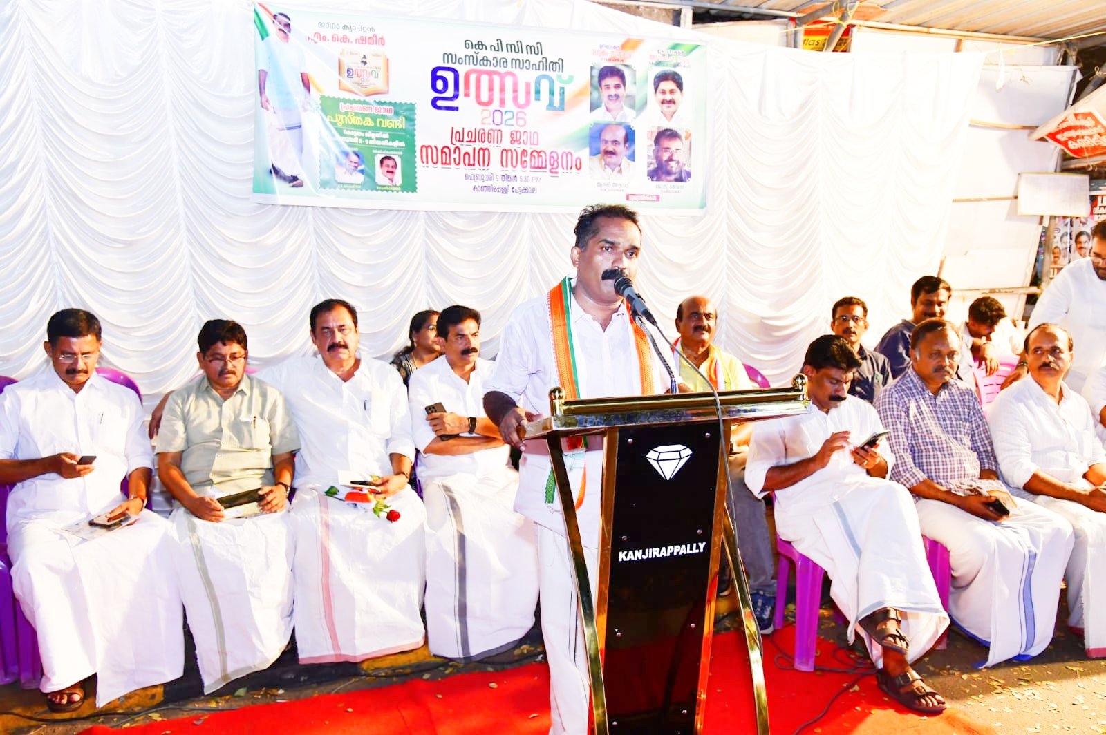 കാഞ്ഞിരപ്പള്ളി : കെ പി സി സി സംസ്കാര സഹിതി സംസ്ഥാന കമ്മിറ്റിയുടെ ആഭിമുഖ്യത്തിൽ 2026 ഫെബ്രുവരി 12 മുതൽ 17 വരെ കോട്ടയത്തു വെച്ചു നടത്തപ്പെടുന്ന “ഉത്സവ് 2026 ” പരിപാടിയുടെ പ്രചരനാർത്ഥം സംസ്കാര സാഹിതി സ്വാഗത സംഘം കമ്മിറ്റിയുടെ നേതൃത്വത്തിൽ പുസ്തക വണ്ടി ഫെബ്രുവരി 9 – 10 തീയതികളിൽ കോട്ടയം ജില്ലയിലെ എല്ലാ നിയോജക മണ്ഡലങ്ങളിൽ പര്യടനം നടത്തി