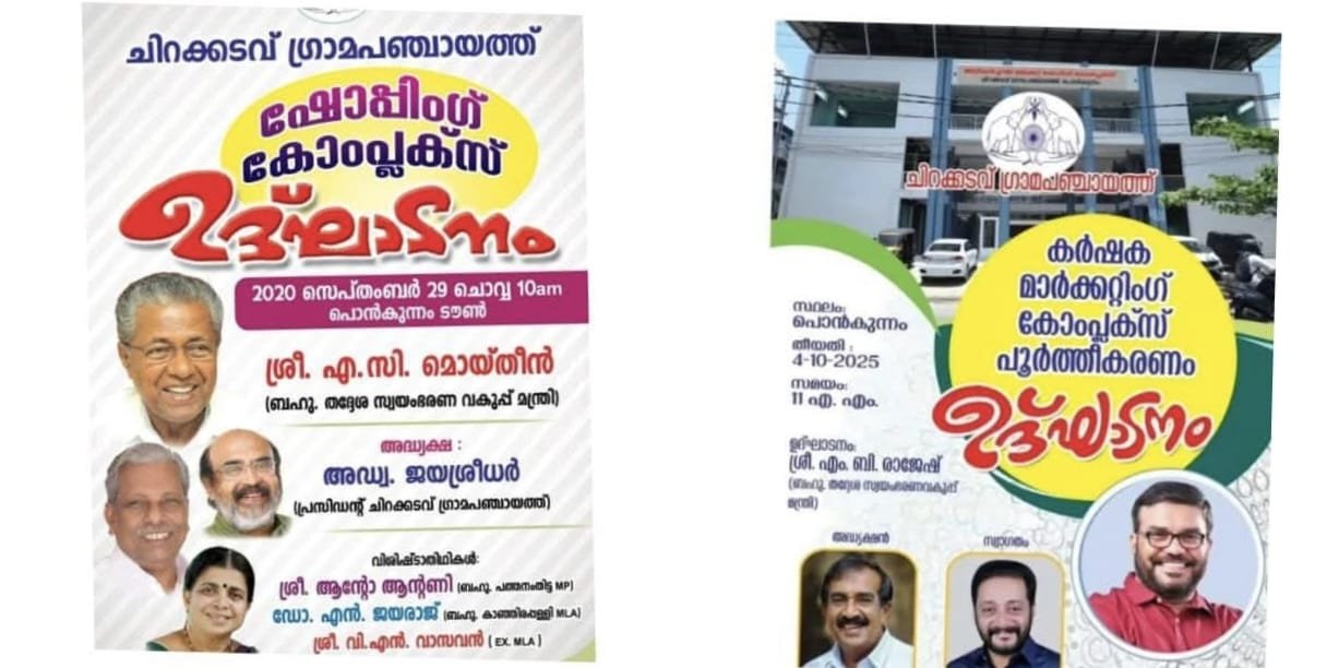 ചിറക്കടവ് പഞ്ചായത്ത് ഷോപ്പിംഗ് കോംപ്ലക്സിന്റെ മൂന്നാമത്തെ ഉദ്ഘാടനമാണ് ഇപ്പോൾ നടന്നത്.