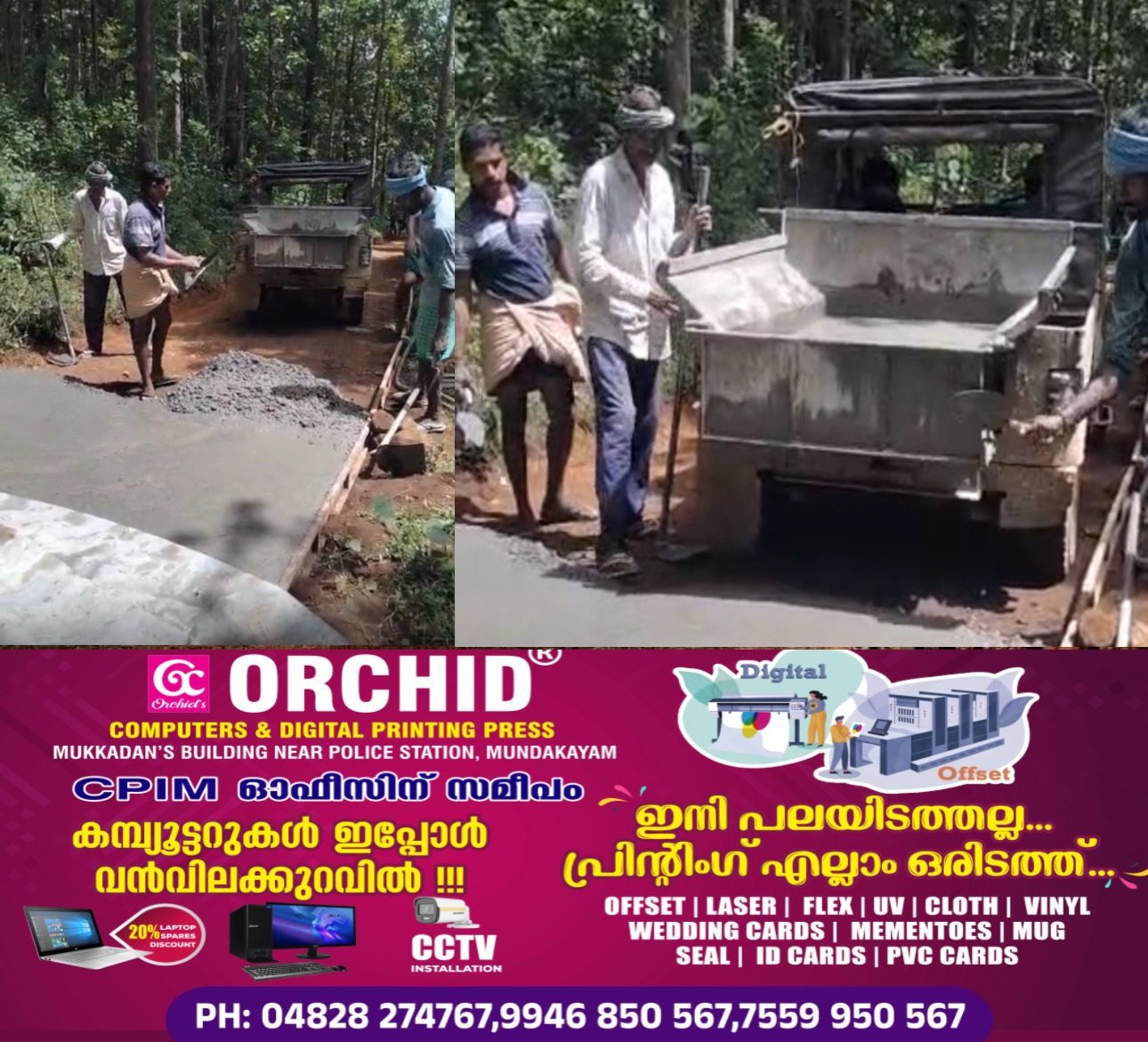 55 വർഷമായ പട്ടയ ഭൂമിയിൽ സഞ്ചാരയോഗ്യമായ റോഡി ല്ലായിരുന്നു, കേന്ദ്ര വന നിയമത്താൽ നിർമ്മാണ പ്രവർത്തനങ്ങൾ നടത്താൻ സാധിച്ചിരുന്നില്ല. കേന്ദ്ര വനമന്ത്രാലയത്തിൽ നിന്നും നിയമ തടസ്സങ്ങൾ മാറ്റി റോഡ് വിട്ടു കിട്ടുന്നതിനായി വാർഡ് മെമ്പർ ശ്രീമതി സിനു സോമൻ 2021 മുതൽ നിരന്തരമായി പരിശ്രമിച്ചതിന്റെ ഫലമായി നിയമാനുമതി ലഭിക്കുകയും ഭൂമി പഞ്ചായത്തിന് വിട്ടു കിട്ടുകയുംതുടർന്ന് ബഹുമാനപ്പെട്ട പൂഞ്ഞാർ എംഎൽഎ അഡ്വക്കേറ്റ് സെബാസ്റ്റ്യൻ കുളത്തുങ്കലിന്റെ സഹായത്തോടെ 10 ലക്ഷം രൂപ അനുവദിച്ച് റോഡ്കോൺക്രീറ്റ് നിർമ്മാണം പൂർത്തിയാക്കി. പ്രദേശവാസികൾക്ക് ഈ വർഷത്തെ ഓണസമ്മാനമായി റോഡ് ഉദ്ഘാടനം ചെയ്തു നൽകാമെന്നു പ്രതീക്ഷിക്കുന്നു