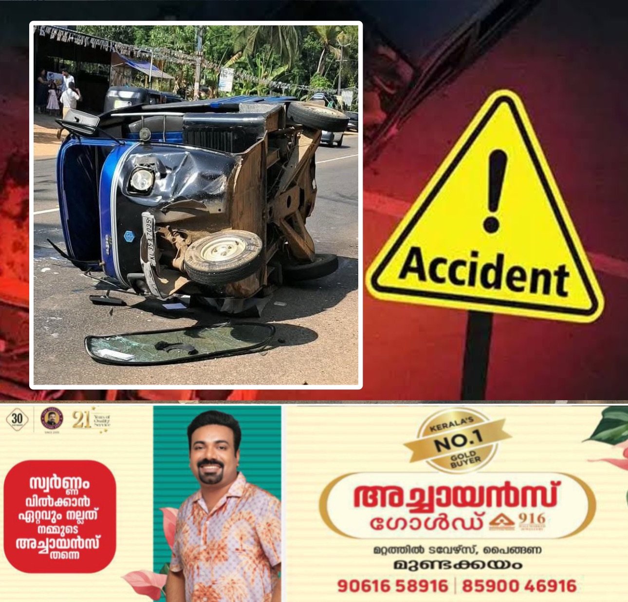 ഇന്ന് പുലർച്ചെയായിരുന്നു സംഭവം. ഒരു ദേശീയ പെർമിറ്റ് ലോറി ഓട്ടോറിക്ഷയിൽ ഇടിക്കുകയായിരുന്നു. ഇടിയുടെ ആഘാതത്തിൽ നിയന്ത്രണം വിട്ട ഓട്ടോറിക്ഷ റോഡിലേക്ക് മറിഞ്ഞു.