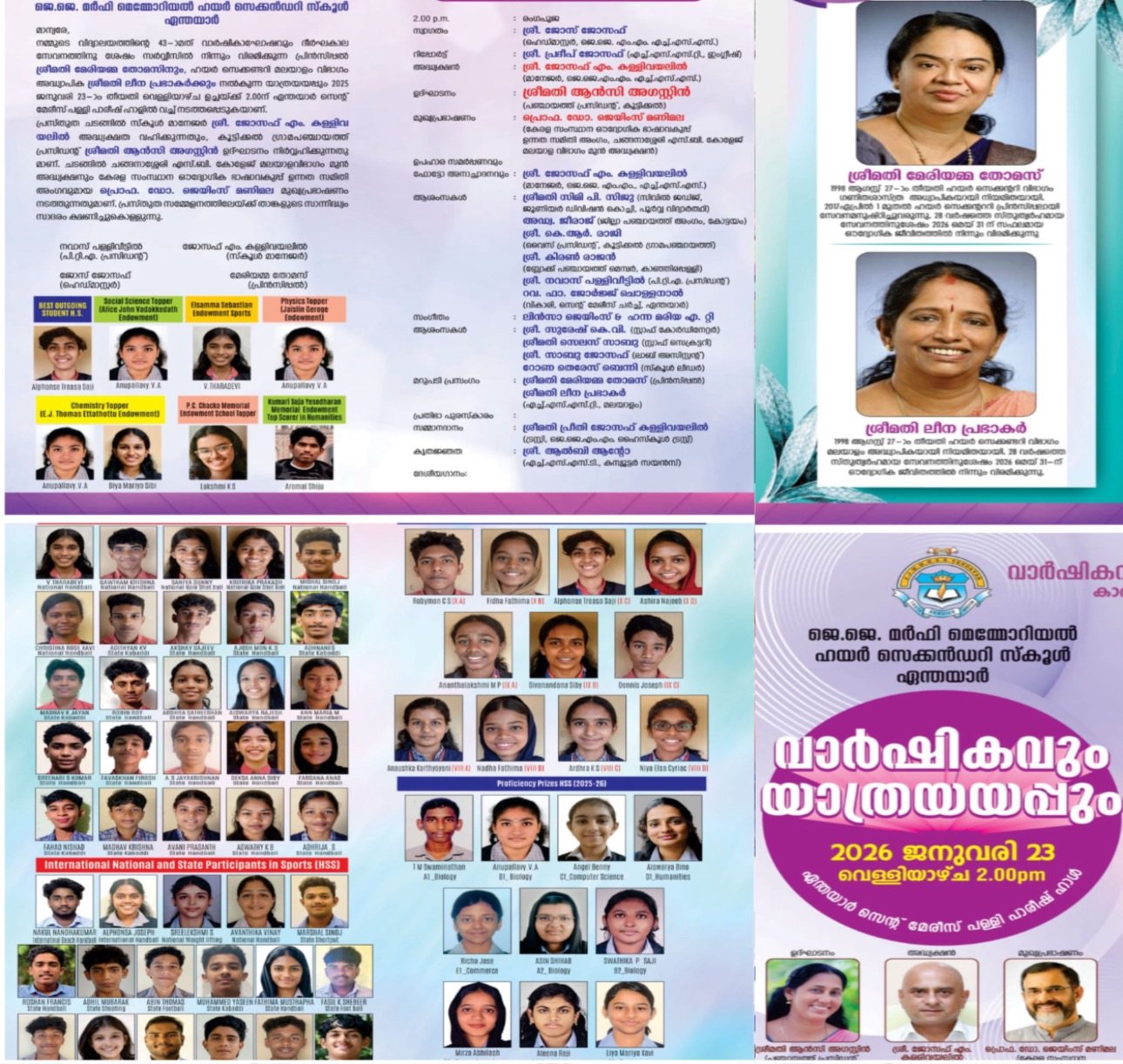 ഏന്തയാർ: ഏന്തയാർ ജെ.ജെ. മർഫി മെമ്മോറിയൽ ഹയർ സെക്കൻഡറി സ്കൂളിന്റെ 43-ാമത് വാർഷികാഘോഷവും വിരമിക്കുന്ന അധ്യാപകർക്കുള്ള യാത്രയയപ്പ് സമ്മേളനവും ജനുവരി 23 വെള്ളിയാഴ്ച നടക്കും. ഉച്ചയ്ക്ക് 2.00-ന് ഏന്തയാർ സെന്റ് മേരീസ് പള്ളി പാരീഷ് ഹാളിൽ വെച്ചാണ് ചടങ്ങുകൾ സംഘടിപ്പിക്കുന്നത്.