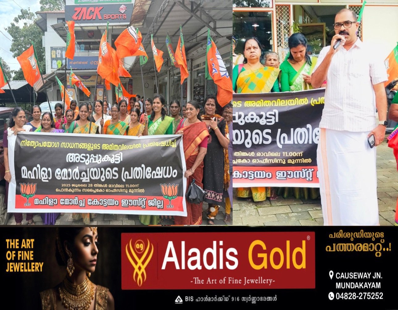 സംസ്ഥാനത്തെ നിത്യോപയോഗ സാധനങ്ങളുടെ രൂക്ഷമായ വിലക്കയറ്റത്തിന് എതിരെ മഹിളാമോർച്ച കോട്ടയം ഈസ്റ്റ് ജില്ലാ കമ്മിറ്റിയുടെ നേതൃത്വത്തിൽ ടൗണിൽ പ്രതിഷേധ പ്രകടനവും സപ്ലൈകോ ഓഫീസിന് മുന്നിൽ അടുപ്പുകൂട്ടി പ്രതിഷേധ സമരവും