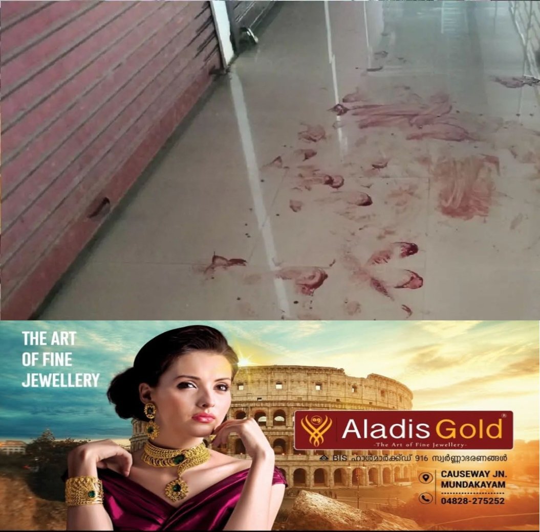 പാലാ കൊട്ടാരമറ്റം ബസ് സ്റ്റാന്ഡ് ഷോപ്പിങ് കോപ്ലെക്സിലെ ഒന്നാം നിലയിലാണ് വ്യാപകമായി രക്ത കറകള് കാണ്ടെത്തിയത്. പല വ്യാപാര സ്ഥാപനങ്ങളുടെ മുമ്ബിലും രക്ത കറകള് വീണ നിലയിലാണ് കാണപ്പെടുന്നത്.