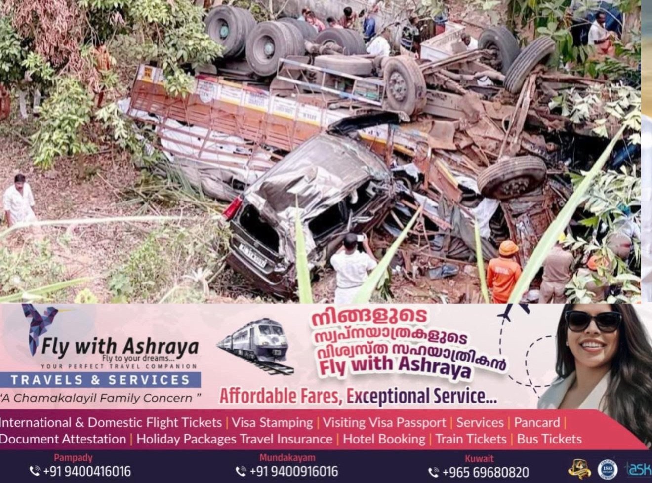 തൊടുപുഴ: തൊടുപുഴ -പാല റൂട്ടിൽ കരിങ്കുന്നം നെല്ലാപ്പാറയിൽ കാറും ലോറിയും കൂട്ടിയിടിച്ച് താഴ്ചയിലേക്ക് മറിഞ്ഞുണ്ടായ അപകടത്തിൽ ഗർഭിണിയടക്കം അഞ്ച് പേർക്ക് പരിക്ക്. ഇന്നലെ വൈകിട്ട് അഞ്ചരയോടെയായിരുന്നു അപകടം. കാറിൽ സഞ്ചരിച്ചിരുന്ന കോട്ടയം എം.ജി. യൂണിവേഴ്സിറ്റി ജീവനക്കാരായ കോലാനി ഇലവുംതടത്തിൽ ഇ.കെ. സജീവൻ (54), അമയപ്ര സ്വദേശി തുരുത്തിപ്പിള്ളിൽ ജിംസൺ ജോൺ (53), ഏഴല്ലൂർ സ്വദേശി സിമി ജിബിൻ (33), ചിത്തിരപുരം സ്വദേശി ബിഞ്ചുമോൾ തോമസ്, ലോറി ഡ്രൈവർ ഉത്തംപാളയം സ്വദേശി ജയകുമാർ എന്നിവർക്കാണ് പരിക്കേറ്റത്. നെല്ലാപ്പാറ കുരിശുപള്ളി വളവിന് സമീപമായിരുന്നു അപകടം. ജീവനക്കാർ സഞ്ചരിച്ചിരുന്ന കാറിൽ ലാറ്റക്സുമായി വന്ന ലോറി ഇടിച്ചായിരുന്നു അപകടം. തൊടുപുഴ ഭാഗത്തേക്ക് വരികയായിരുന്ന കാറിന്റെ പിന്നിൽ ലാറ്റക്സുമായി വന്ന ലോറി നിയന്ത്രണം വിട്ട് ഇടിക്കുകയായിരുന്നു. ഇടിയുടെ ആഘാതത്തിൽ രണ്ട് വാഹനങ്ങളും തലകീഴായി താഴ്ചയിലേക്ക് മറിഞ്ഞെങ്കിലും കാറിന് മുകളിലേക്ക് ലോറി വീഴാത്തതിനാൽ വൻ ദുരന്തം ഒഴിവായി. പരിക്കേറ്റവരെ ഉടനടി തൊടുപുഴയിലെ രണ്ട് സ്വകാര്യ ആശുപത്രികളിലായി പ്രവേശിപ്പിച്ചു. ആരുടെയും പരിക്ക് ഗുരുതരമല്ല. അപകടത്തെ തുടർന്ന് തൊടുപുഴ ഫയർഫോഴ്സും കരിങ്കുന്നം പൊലീസും സ്ഥലത്തെത്തി രക്ഷാപ്രവർത്തനം നടത്തി.